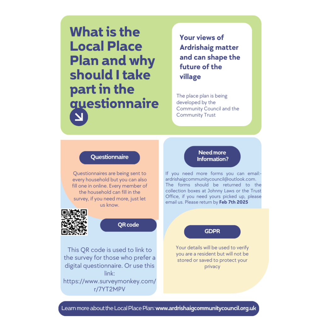 ACC can be contacted through the Ardrishaig Community Council Facebook page or by e-mail to ArdrishaigCommunityCouncil@outlook.com.